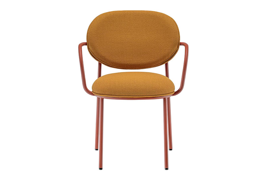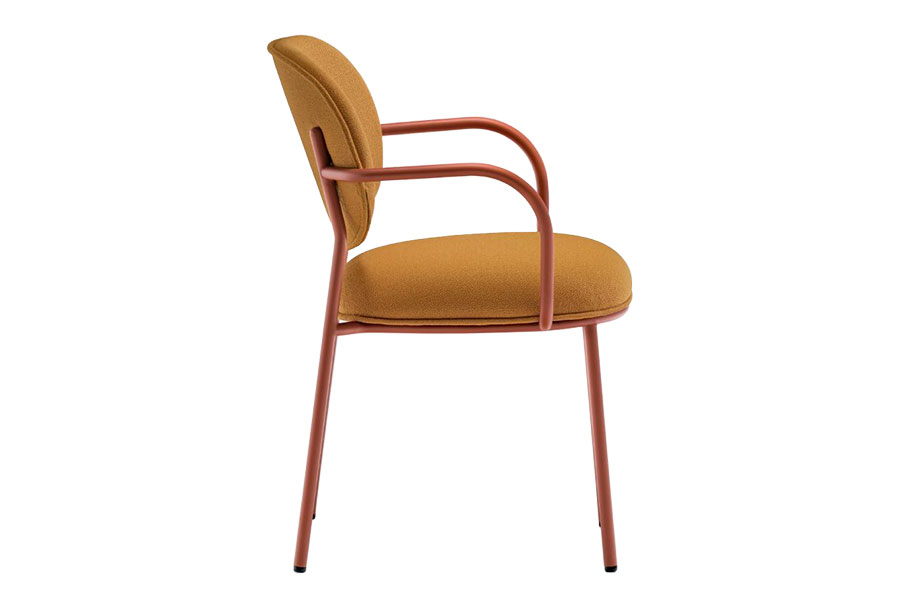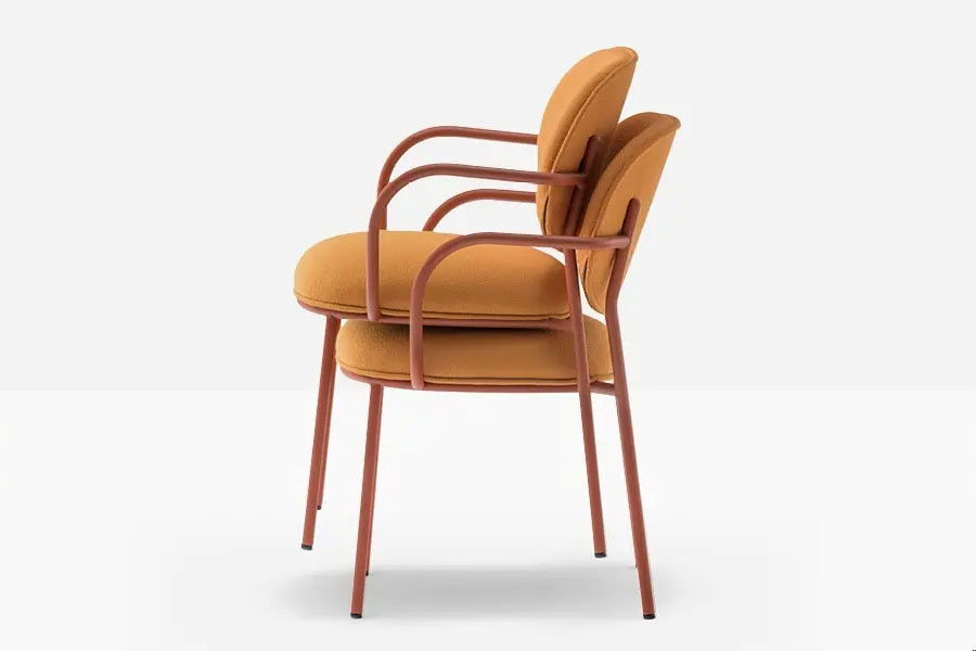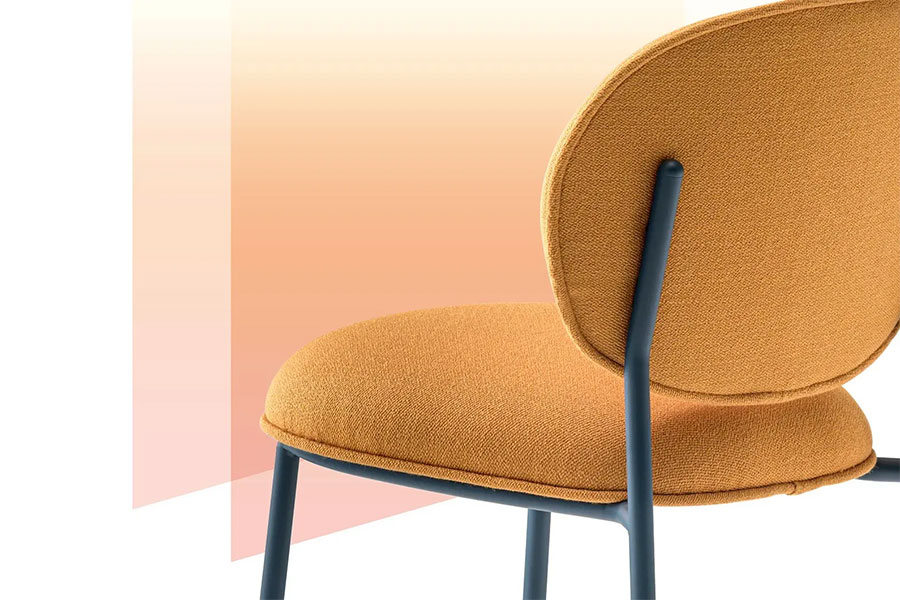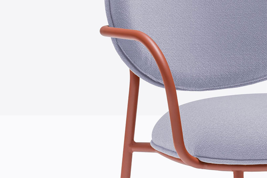 Elegance and sophistication, comfort and meticulous attention to detail inspired Stiel, an armchair featured by soft and rounded shapes in polyurethane foam on a curved round steel tube frame. The seat and backrest are connected to the frame without visible fixing screws. Stiel collection focuses on the comfort and well-being to enjoy both in relax or relation spaces. The various fabric and metal finishes make Stiel suitable for residential or contract.