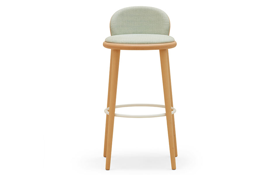 Soft lines and simple geometry describe the contours of the Veretta chair, characterised by the feature ring in curved solid beechwood that surrounds the seat and houses the backrest. Veretta backrests can be padded at the front, showing off the natural wood, especially at the joints with the seat ring with its hand-crafted ends.