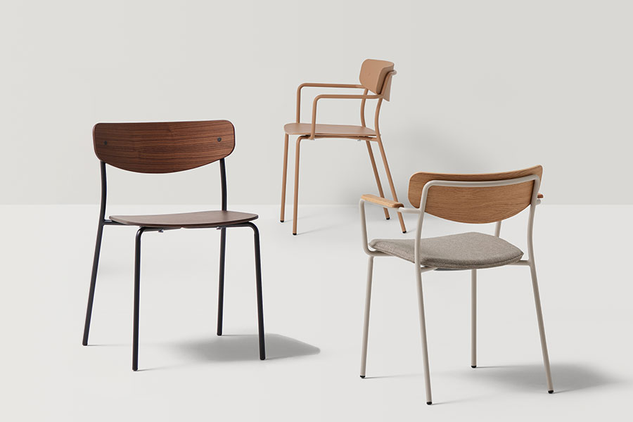 The family is made up of chairs and stools available in two heights. To achieve greater functionality, both the chairs and the stools are stackable. The design and the variety of finishes available, allow this to be a very transversal collection that can be easily integrated in diverse spaces and contexts such as: restaurants, cafes, workplaces, learning rooms and private residences.
