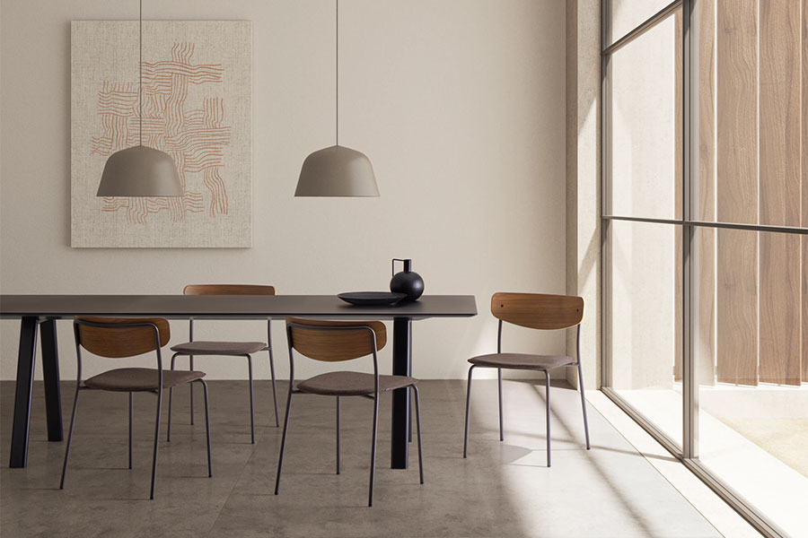 LEA is a collection of chairs and stools with an identity marked by a refined and light silhouette that is at the same time strong and unique. The curved shape of the backrest makes it comfortable and recognizable.