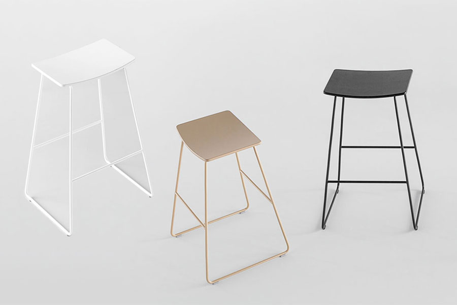 TAO is a collection of multipurpose stools with a lightweight, essential and neutral design. The collection is made up of stools with either a wooden or upholstered seat. The wooden seats are available in lacquered colours or in beech, oak and walnut veneers. The upholstered seats are manufactured in all the leathers and fabrics of the INCLASS swatch cards or COM. The metallic structures are manufactured in two heights and can be finished in chrome or polyester paint in all colours from the INCLASS colour samples.