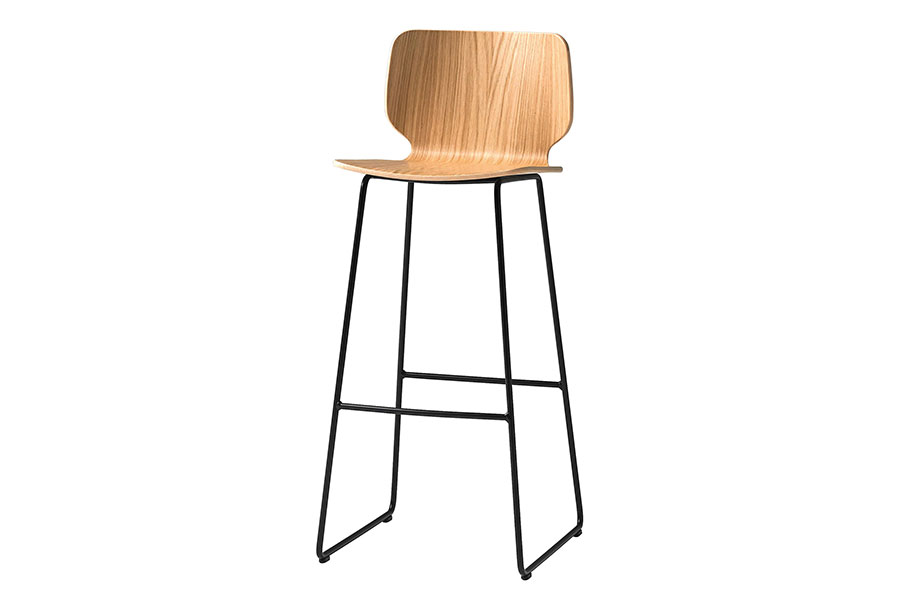 Designed by Yonoh Studio, NIM Stool is part of the NIM Seating collection. NIM Stool stands out for its enveloping, friendly and elegant design. The use of wood and upholstery outlined with an original edging that contrasts with its contours bring warmth and customization possibilities to the collection. The shells are available in oak or beech plywood, lacquered or in upholstered versions. The metallic structures are produced in sled base version. The shells and the metallic bases are available in a broad range of finishes from the INCLASS sample book. Fabrics in factory selection or COM.