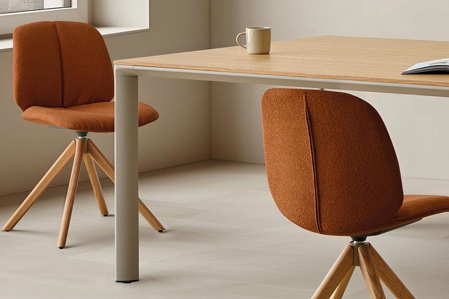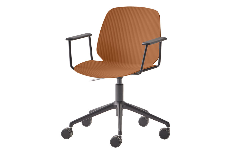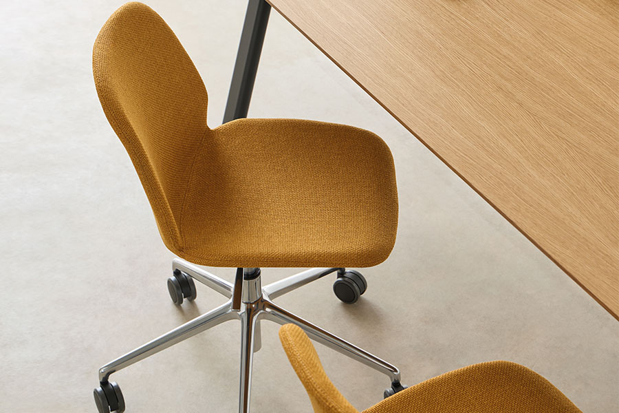 Its original plastic mono-shell and warm surface texture define the identity of this versatile collection. A unique piece with organic, enveloping forms, designed to provide comfort and elegance in a single gesture. The wide range of finishes and functional base options allow seamless integration into diverse spaces and contexts