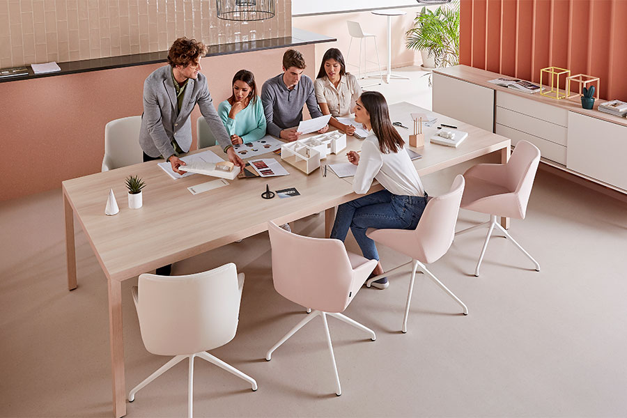 In new workspaces, the furniture becomes the tool capable of offering a world of possibilities. Workplaces aspire to be more than accumulators of tasks and people, seeking to be a meeting point for creativity and talent. Noom is warm and comfortable. A chair for any time of day.
