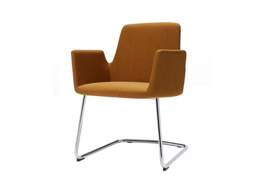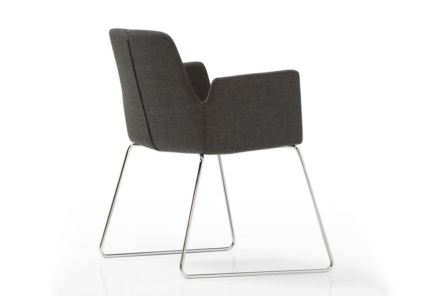 ALTEA armchairs can be upholstered in any of the leathers or fabrics from the INCLASS swatch cards or COM. The metallic structures are finished in chrome or polyester paint in any of the colours from the INCLASS samples.