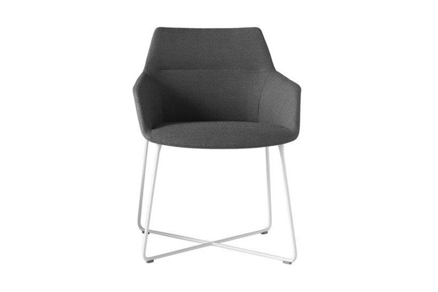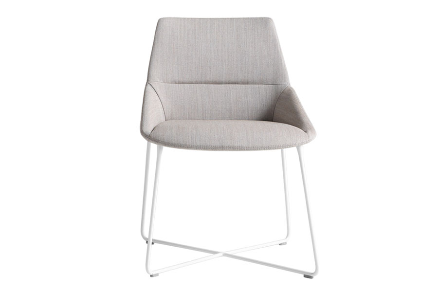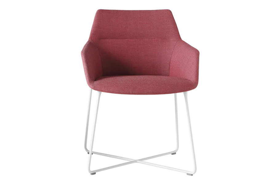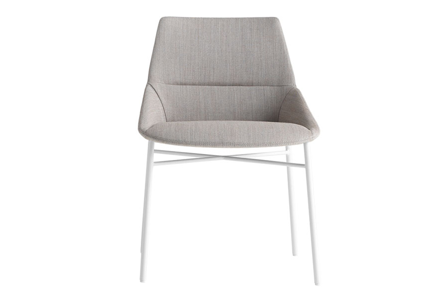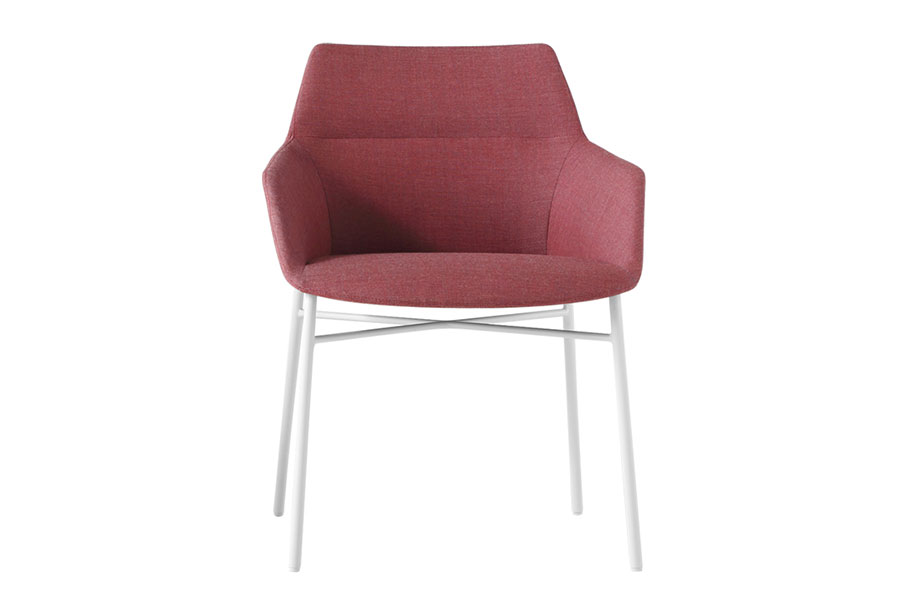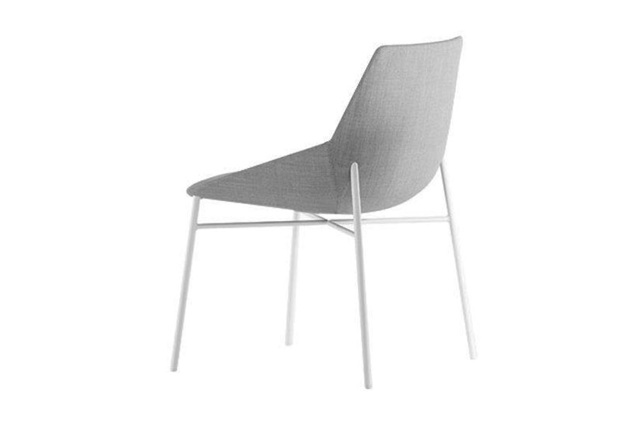 Dunas Xs chair and armchair manufactured with injected foam over steel inner frame and slip-covered fabrics, vinyls or leather. 4-leg or Rod base designs are steel finished in chrome or painted.