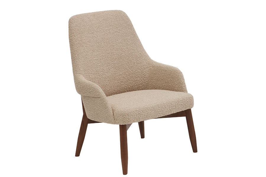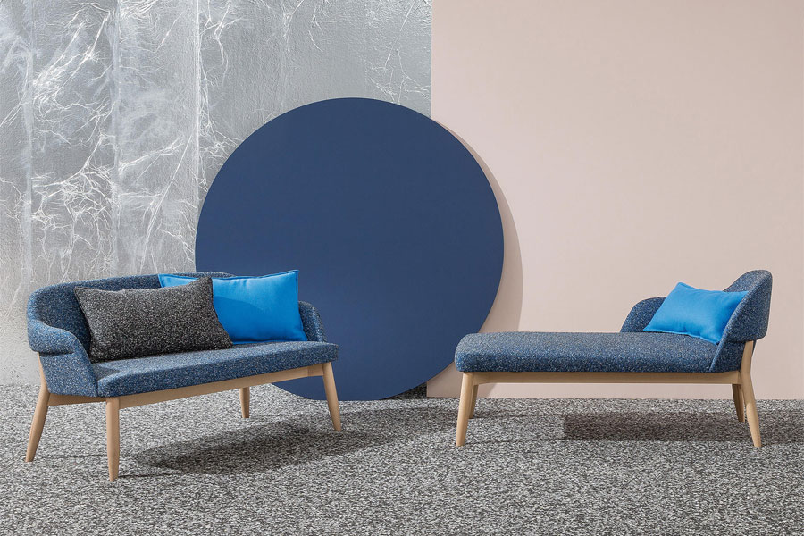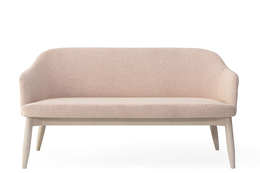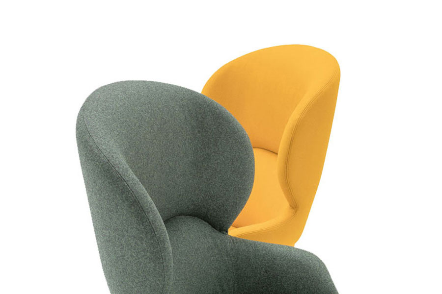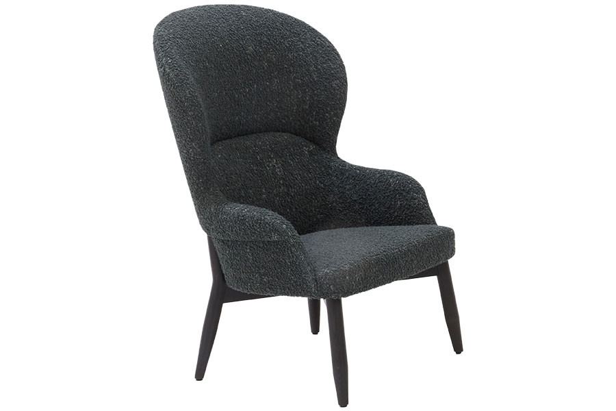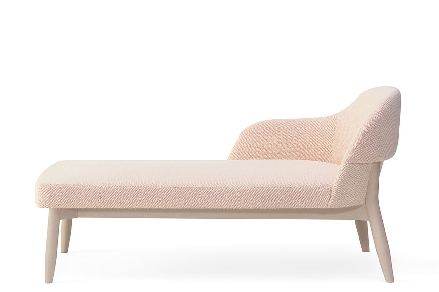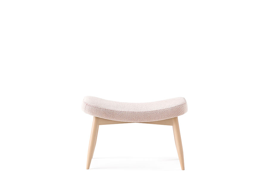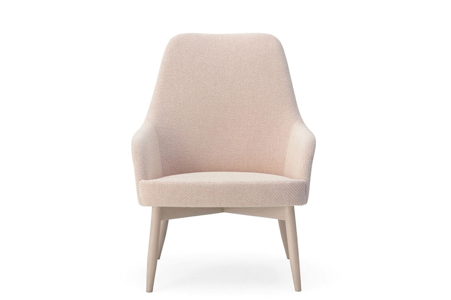 Spy Lounge is characterized by its accurately conceived construction, by the master craftsmanship in the shell which folds and receives the back leg. A softly elegant design which bestows imminent comfort upon its guest and prestige to its surroundings. Stained or lacquered armchair in solid beech, with an upholstered plywood shell. Available in standard factory fabrics or in COM.