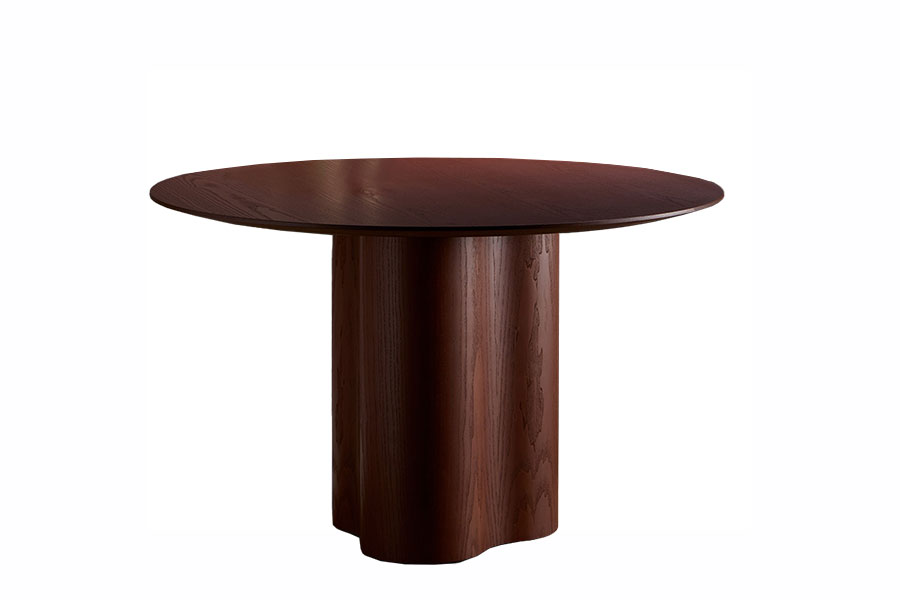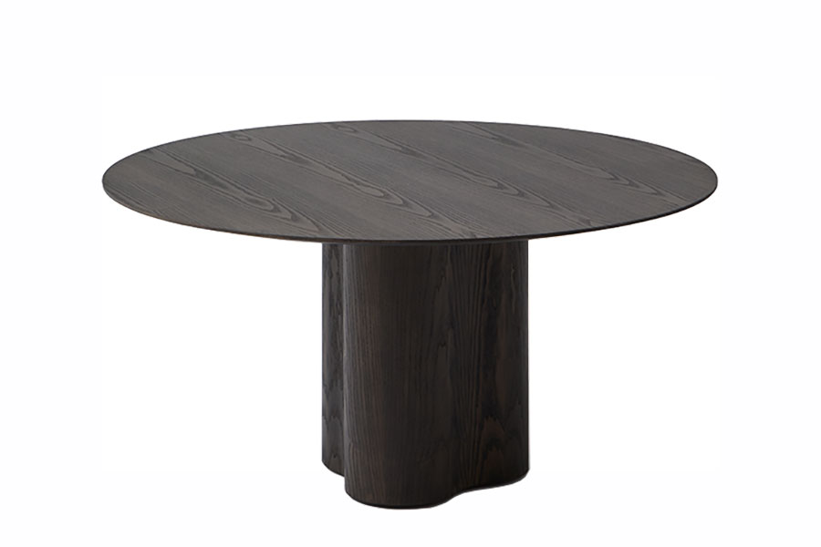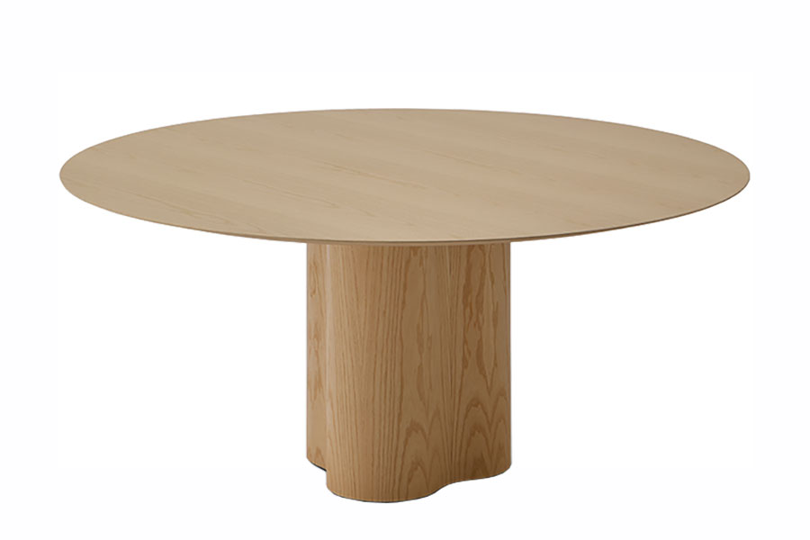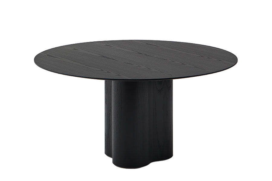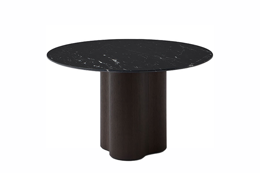 Stella’s design is inspired by the sinuous shapes of Lake Point residential tower, in Chicago. This influence is perceivable at the table’s base, a robust and totemic piece shaped like a rounded star. It has a complex manufacturing process carried out by hand, taking care of every detail to offer the highest quality. Collection of dining tables composed of a circular top in veneered MDF or white, black or travertine marble, and an organically shaped structure. The structure is available in ash or oak veneered MDF. The table is served disassembled and has counterweights that stabilize the structure.