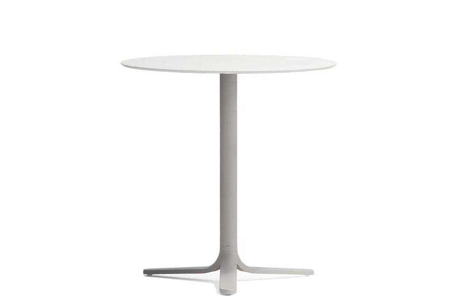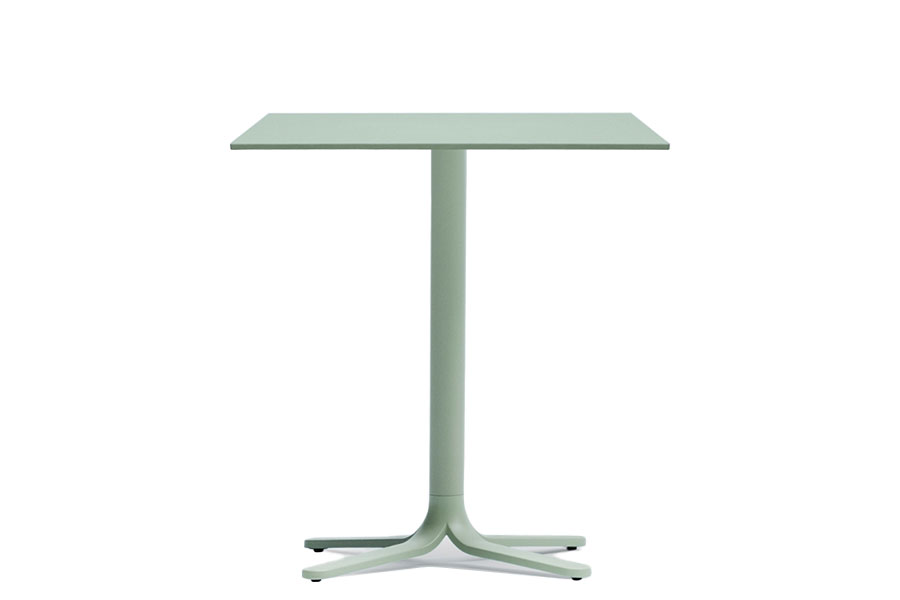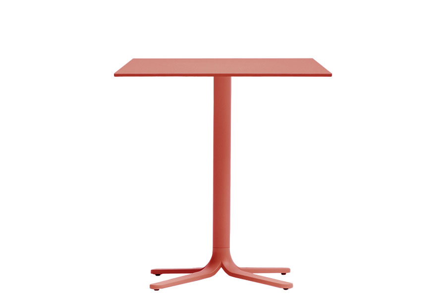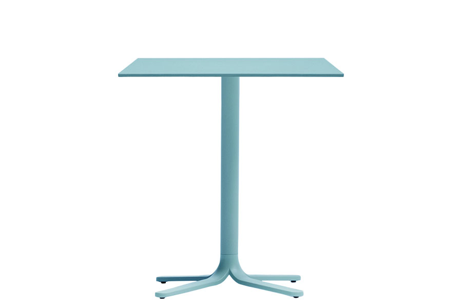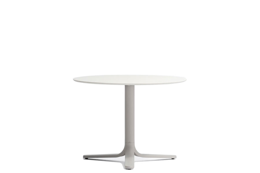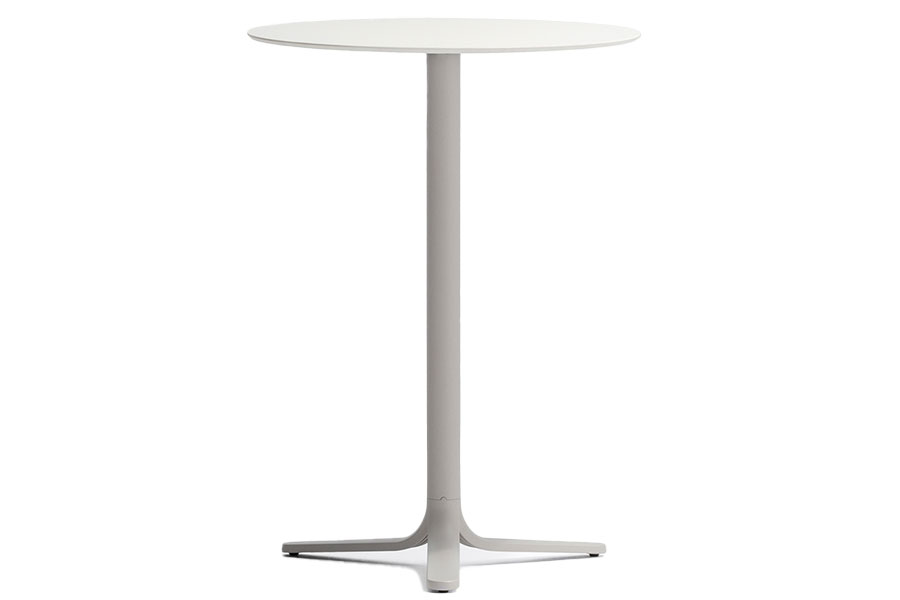Fluxo uses primary geometric shapes, starting from the section of its stem-like base, to generate a form with clean and minimalist lines. The circular-section vertical column stretches down, spreading out into "ribbons" that form the base of the table. Die-cast aluminum base with three legs. Available in polished or powder coated aluminum and titanium.