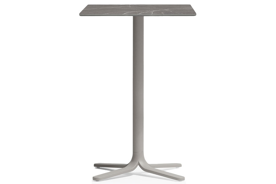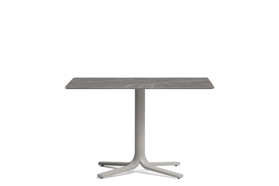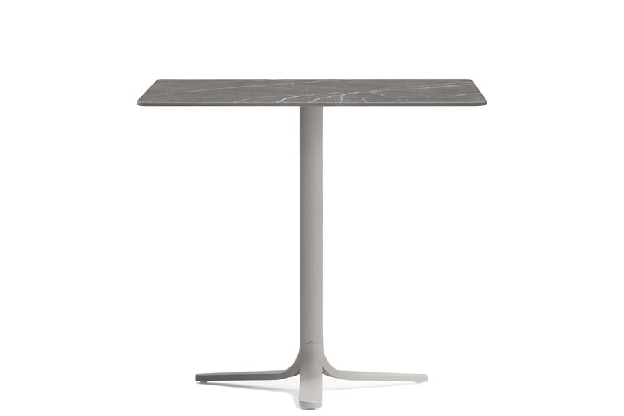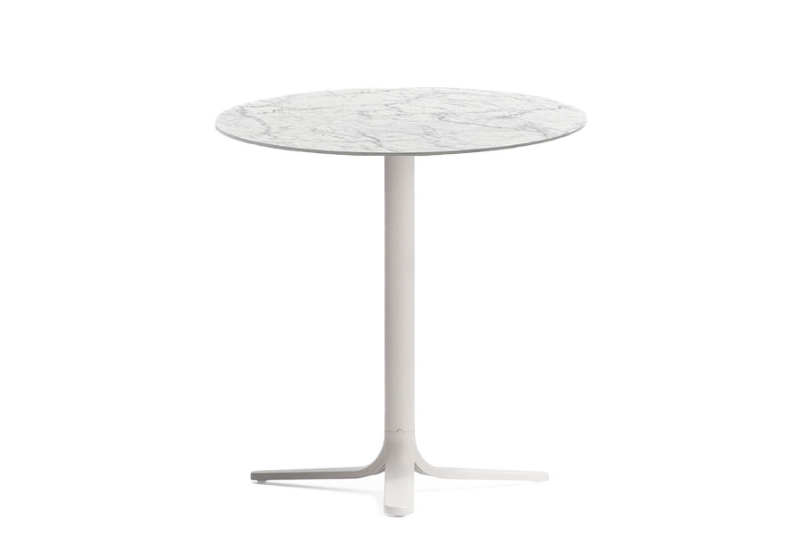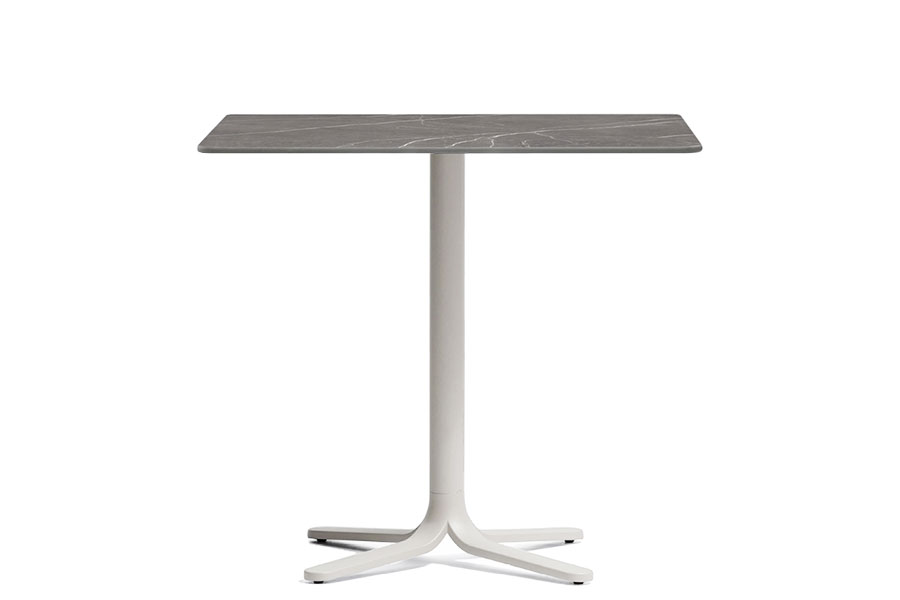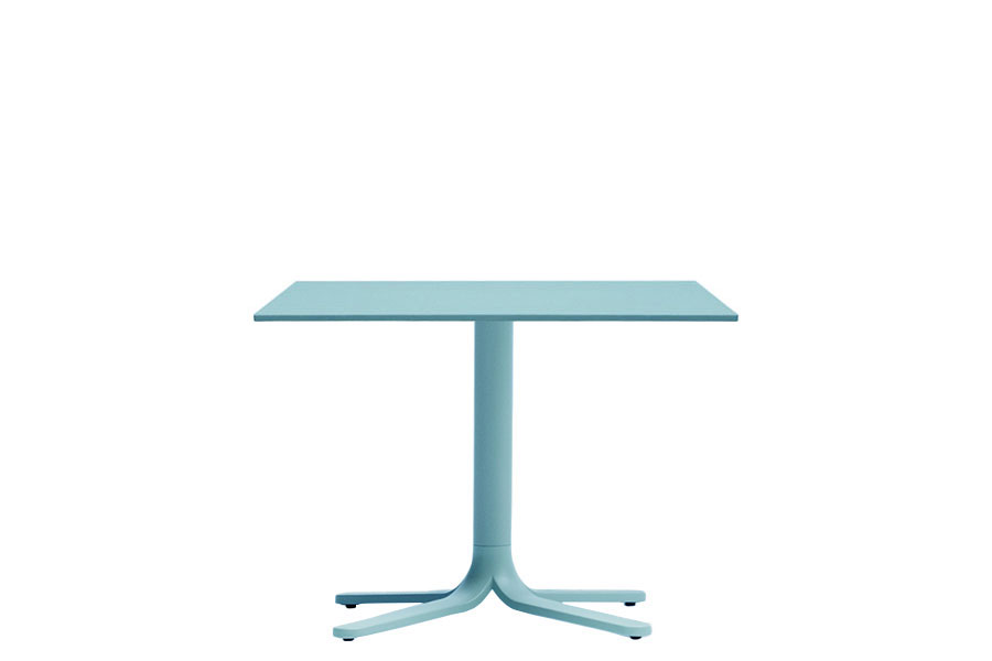 Fluxo uses primary geometric shapes, starting from the section of its stem-like base, to generate a form with clean and minimalist lines. The circular-section vertical column stretches down, spreading out into "ribbons" that form the base of the table. Die-cast aluminum base with three legs. Available in polished or powder coated aluminum and titanium.