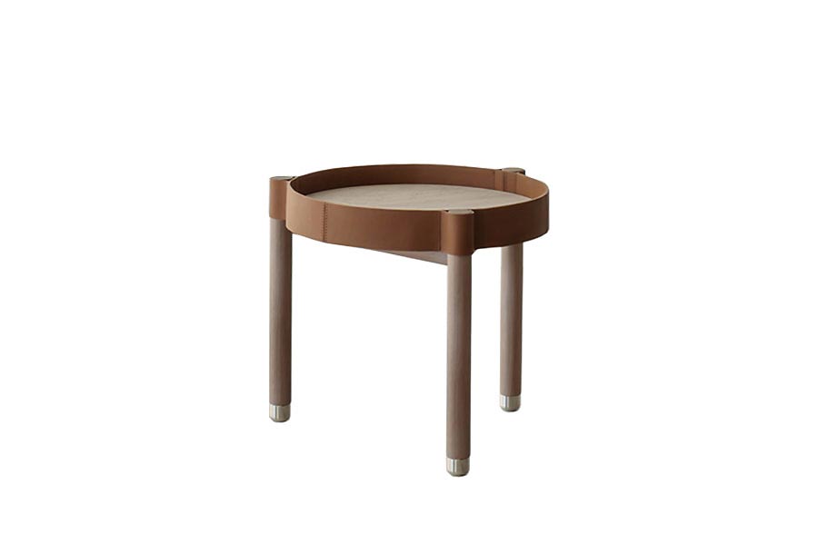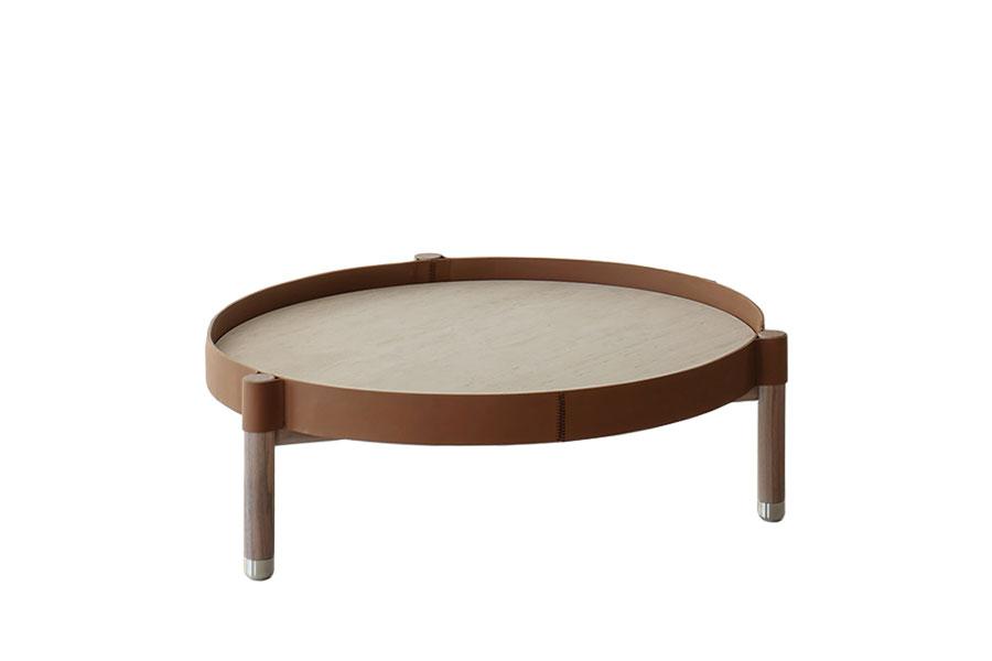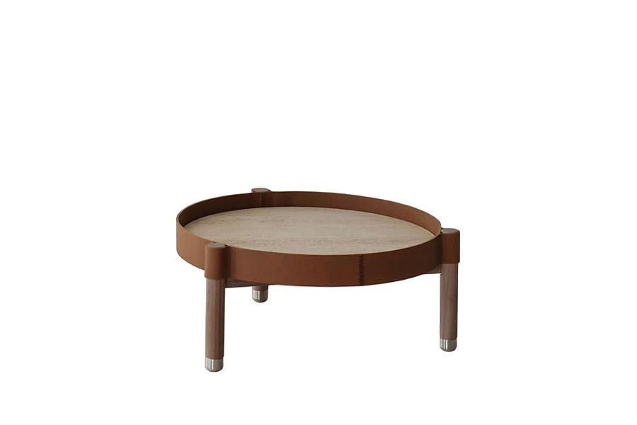 He Miro coffee tables play with perception, transforming an everyday object into a design icon with a discreet yet sophisticated allure. Coffee tables with structure in bleached Canaletto Walnut solid wood and feet in brushed steel. Under top in black lacquered MDF, top in ceramic available in four versions: white Travertine, beige Travertine, grey Travertine and Provenzale. Metal outer edge covered in leather with special raw cut edges finishing, available in three leathers: Soffio, Setanil and Natural Velour.