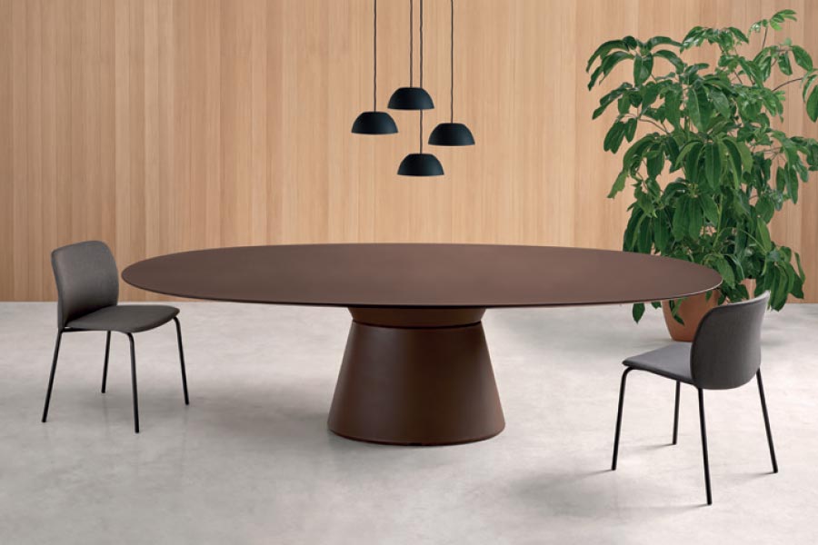 The ESSENS Elliptical tables are part of the Essens collection of tables combines functionality, design, and harmonious proportions. A versatile system of tables that now grows with a new and sculptural elliptical base. The new base allows the construction of large tables with elliptical format and to compose endless meeting tables by sections using multiple bases.