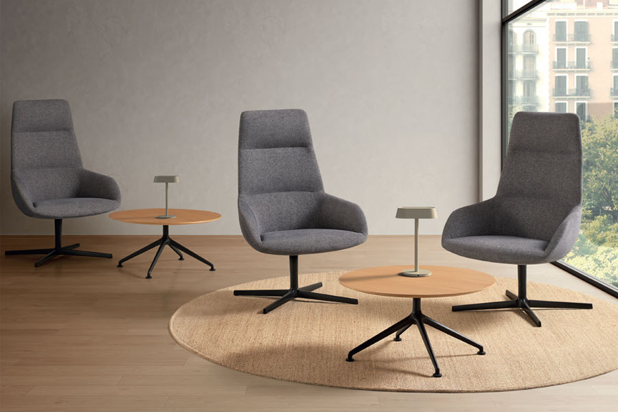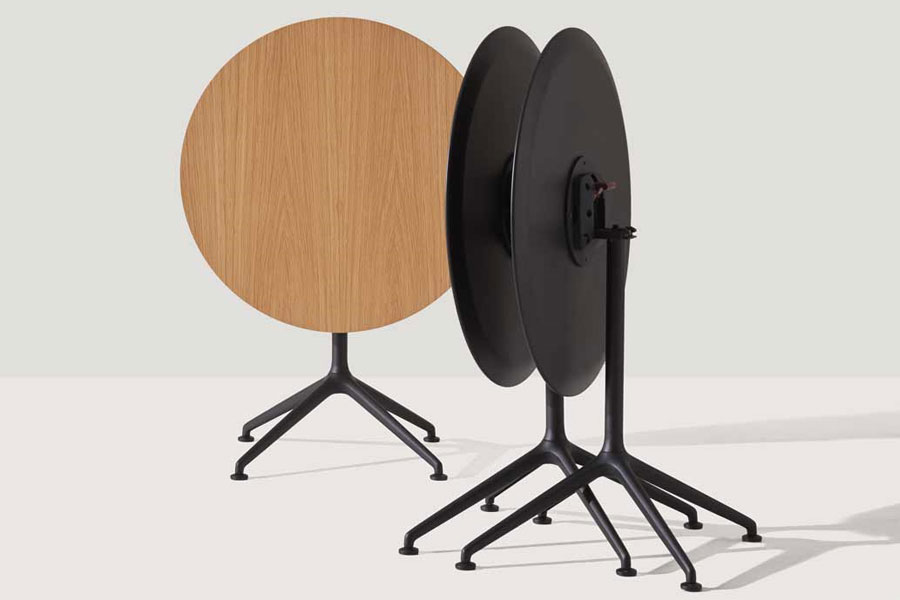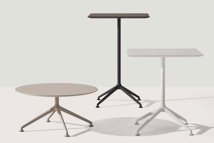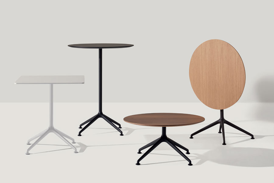 LEX is a collection of versatile tables designed for flexible use in public or domestic spaces. The central frame includes an elegant 4-spoke aluminum base that gives identity to this functional family. The bases are manufactured in a wide range of colours or with a in chrome finish. The tables are available in three heights with tops in different materials and in round or square formats. The collection includes tables with a fix or flip top.